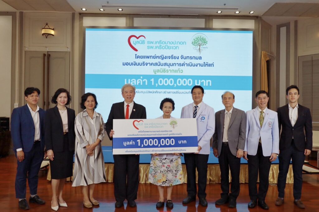 6 สิงหาคม 2568 มูลนิธิรากแก้วนำโดย ผศ.นพ.เฉลิมชัย บุญยะลีพรรณ ประธานกรรมการ พร้อมด้วย ม.ล.ปริยดา ดิศกุล กรรมการและเหรัญญิก และ คุณสิตะกาญจน์ อนันตศิลป์ กรรมการและเลขาธิการ ได้ร่วมกันรับมอบเงินบริจาคจำนวน 1,000,000 บาท จากมูลนิธิโรงพยาบาลเครือบางปะกอก – เครือปิยะเวท โดยมี พญ.เจรียง จันทรกมล ประธานเจ้าหน้าที่บริหารโรงพยาบาลในเครือบางปะกอก – ปิยะเวท พร้อมคณะผู้บริหาร ร่วมมอบเงินสนุนการดำเนินงานมูลนิธิฯ