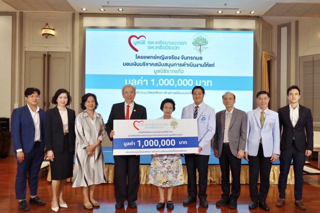 6 สิงหาคม 2568 มูลนิธิรากแก้วนำโดย ผศ.นพ.เฉลิมชัย บุญยะลีพรรณ ประธานกรรมการ พร้อมด้วย ม.ล.ปริยดา ดิศกุล กรรมการและเหรัญญิก และ คุณสิตะกาญจน์ อนันตศิลป์ กรรมการและเลขาธิการ ได้ร่วมกันรับมอบเงินบริจาคจำนวน 1,000,000 บาท จากมูลนิธิโรงพยาบาลเครือบางปะกอก – เครือปิยะเวท โดยมี พญ.เจรียง จันทรกมล ประธานเจ้าหน้าที่บริหารโรงพยาบาลในเครือบางปะกอก – ปิยะเวท พร้อมคณะผู้บริหาร ร่วมมอบเงินสนุนการดำเนินงานมูลนิธิฯ